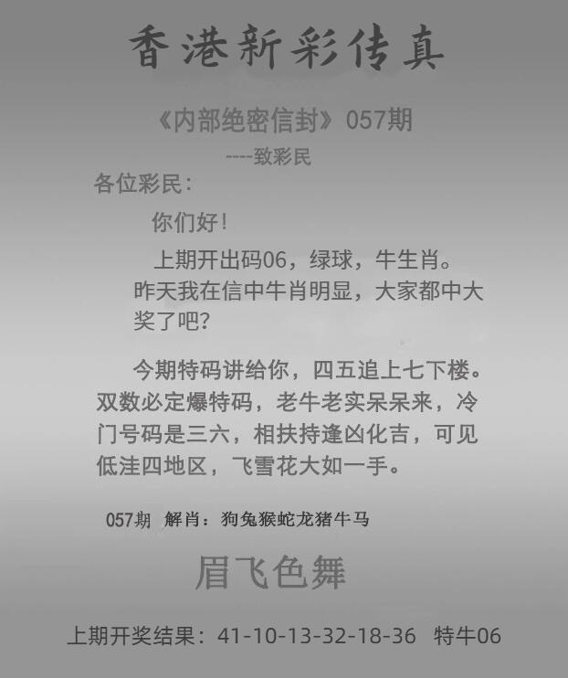 | 057期 | 鸡 | 1头 | 0尾 | 马37 |