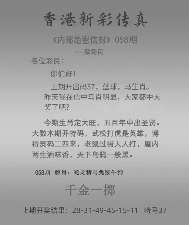 | 058期 | 鸡 | 2头 | 3尾 | 兔40 |