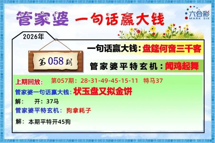 2026生肖: 01马 02蛇 03龙 04兔 05虎 06牛 07鼠 08猪 09狗 10鸡 11猴 12羊