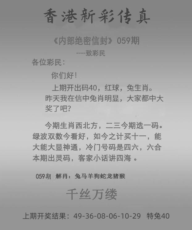 | 058期特开:(兔40)错 |
