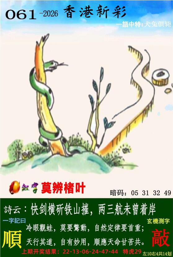 | 061期: ⑦肖 | 马牛猪虎狗鸡蛇 | 鼠31 |