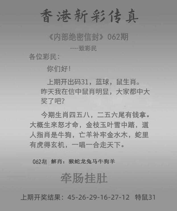 | 62期:公式 四肖 | 62期:公式 三头 | 62期:公式 杀肖 |